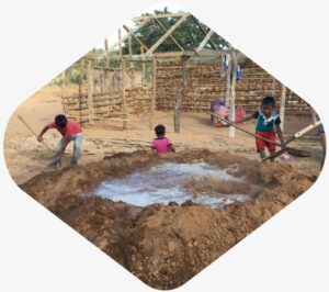 El proyecto de Etnoeducación diseñó una actividad para los niños de la comunidad, que consistió en recolectar las botellas de plástico que han sido desechadas inadecuadamente en la ranchería, para eventualmente rellenarlas con la misma tierra del lugar (más conocido como ecoladrillos), buscando un beneficio ambiental y estructural para la comunidad.
